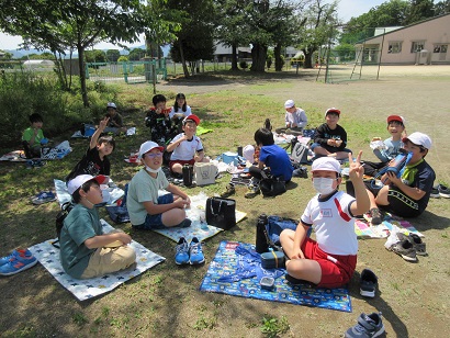 絵文字:星地域草かりボランティアによる校庭の除草作業