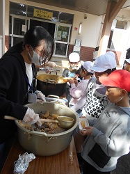 本郷こども祭では、日頃からお世話になっている本郷平成会の皆様に感謝の気持ちを伝えられるように、自分達でできることは自分達でやるということで、前日に2年生がさつま芋洗い、6年生がさつま芋をホイルで包み、おでんの大根とこんにゃくを切るなどのしたごしらえをしました。