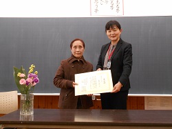 受賞された渡邊夏江様は、お孫さんが本郷小学校を卒業してからも、長きにわたり本郷小学校区で子ども達の見守り【立哨】をしてくださっています。
