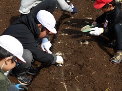2時間目にじゃがいもの植え付けをしました。大きくてたくさんのじゃがいもが収穫できると良いですね。