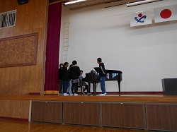 2時間目が終わり、休み時間になってからピアノの自主練習の周りに数人が囲み、伴奏に合わせ歌ってる姿がありました。心ひとつに・・・という精神がみえてくるように感じました。