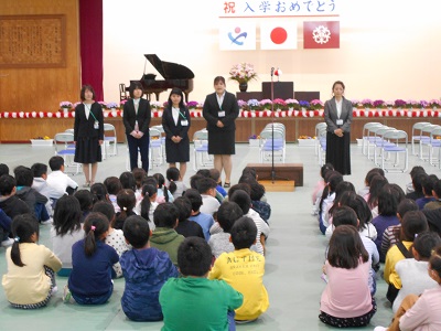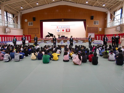教科書授与、担任発表等、全校児童が
