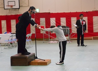 代表児童が教科書を授与されました。