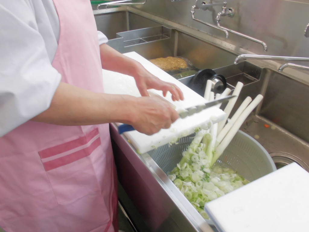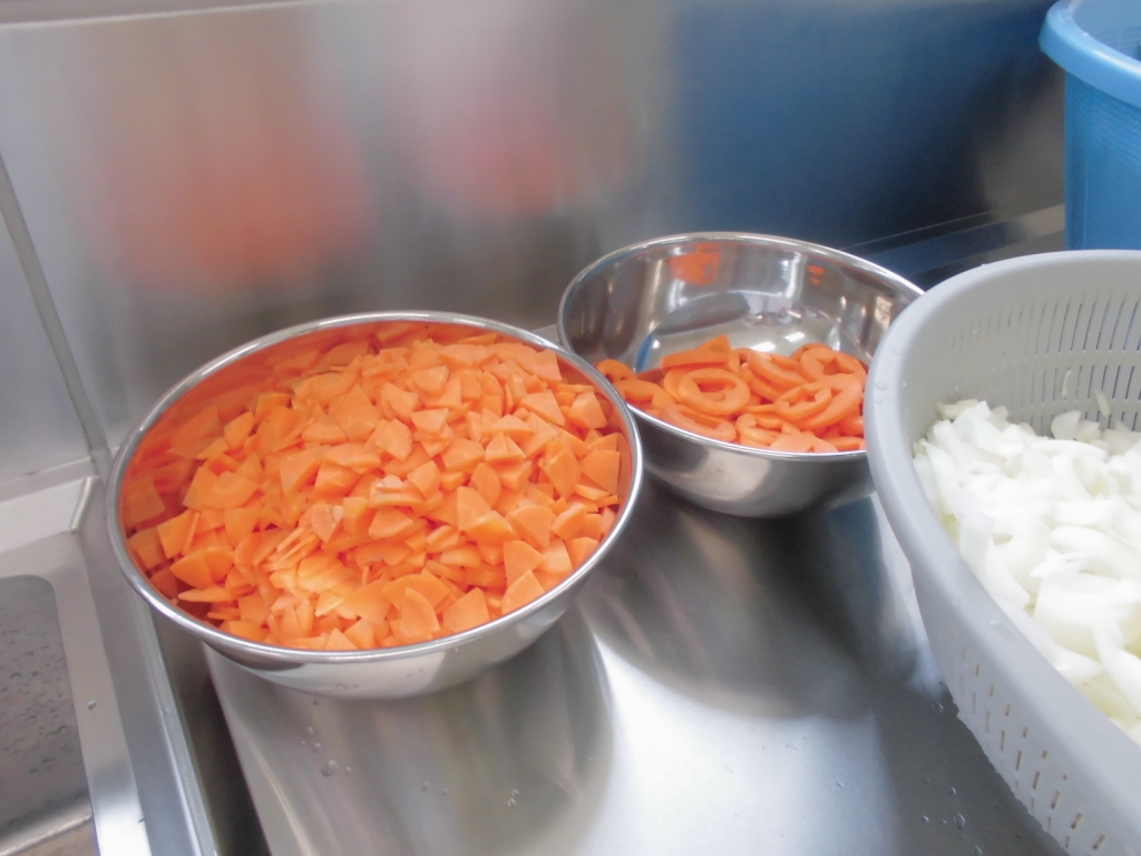 野菜はすべて手切りです。子供たちが食べやすいように、小さく丁寧に切ります。