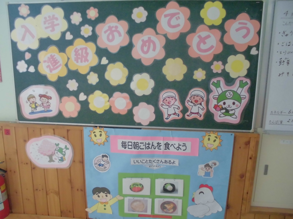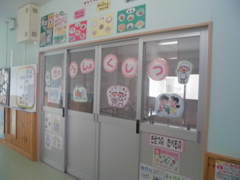 また、給食室の前には、マナーや食べ物の栄養のことなども掲示して