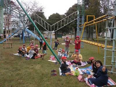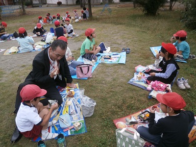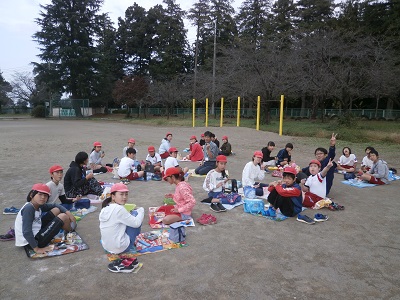奇跡的に秋空給食を校庭で行うことができました。
