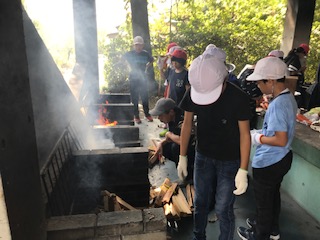 絵文字:星地域草かりボランティアによる校庭の除草作業