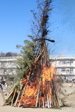 どんど焼きが1月12日に、本郷小学校の校庭で行われました。