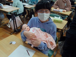 個々の違い、様々な変化、命の誕生の奇跡と素晴らしさを学びました。生まれたばかりのあかちゃんの人形を抱かせていただき、命の重さも体験しました。