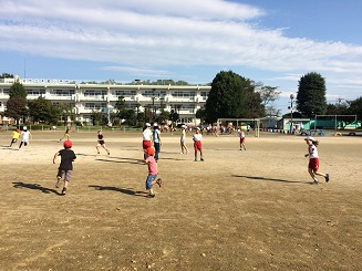 9月29日(火)の朝は、全校児童が縦割り班で仲良く遊びました。きれいに澄みきった秋空のもと、それぞれの班がドッジボール、けいドロ、だるまさんが転んだ、シュートゲームなど高学年がリードして楽しく遊ぶことができました。あっという間に時間が過ぎてしまいました。