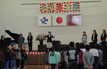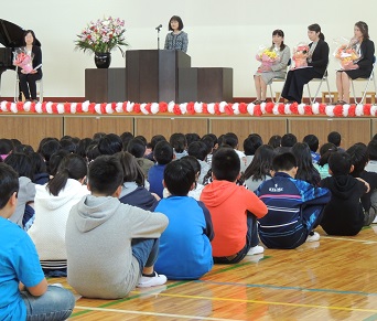 4月12日(金)本年度、本校を去られた5人の先生方が、離任式で本校に戻って来られました。