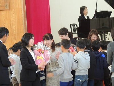 お礼の手紙・花をお渡しした後、先生方からご挨拶をいただきました。