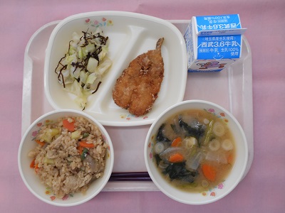 今日は、秋の味覚がたくさん入った秋の香りごはんでした。