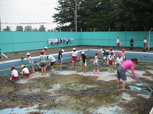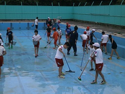 6月7日(火)全学年で分担してプールを清掃しました。プールサイドの草むしり、葉っぱ取り、プールの中のヘドロ取りなど、一生懸命に各学年取り組みました。とてもきれいになり、プール開きが待ち遠しいですね。