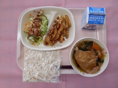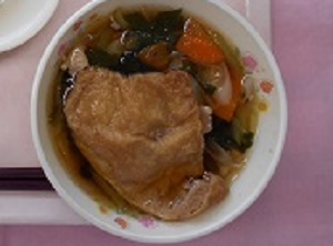 今日は、大きな油揚げが入ったきつねうどんでした。