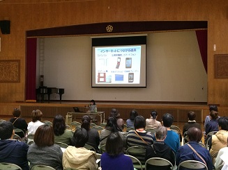 携帯電話やスマートフォン等の危険性や保護者の役割などについて、埼玉県ネットアドバイザーの先生に講演をしていただきました。来校者の皆様とともに4・5年生の児童も一緒にDVDをみたり、お話を聞いたりしました。講演会に先立って、アトラクションとして4年生の合唱発表も行いました。