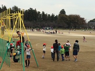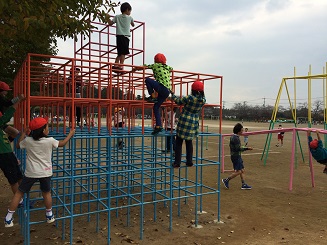 深まる秋の中、校庭の各場所で、縦割班での会食を行いました。会食の後は、みんなでレクレーションを行い、楽しみました。