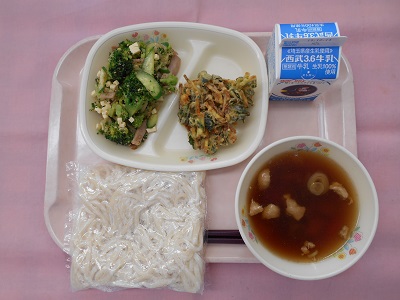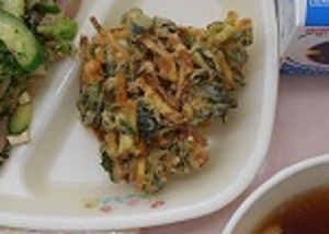 今日は、たくさんの野菜が入ったほうれん草かき揚げでした。