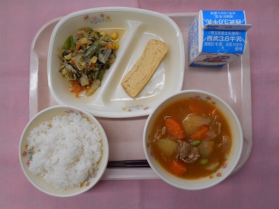 今日は、肉じゃがにトマトを入れた、洋風の肉じゃがでした。