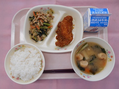 6年生に頑張ってきて欲しい!と願いを込めて、かつ丼にしました。