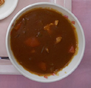 角切りの大きい鶏肉が入っていて、食べごたえのあるカレーに仕上がりました。