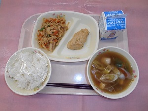 本日の給食は、さわらの味噌マヨネーズ焼きとけんちん汁です。