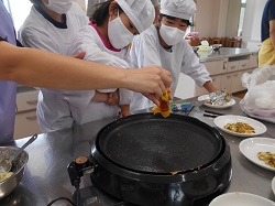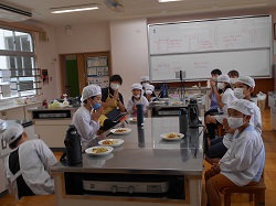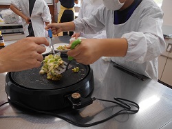 みんなで協力して、役割分担をして手際よく調理を進めたり、熱くなったホットプレートに触らないように促したり、楽しく和やかな雰囲気で実習が出来ました。