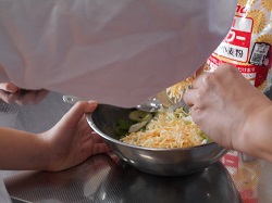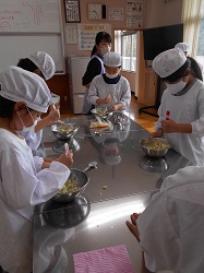 支援学級の1,2時間目は、調理実習でねぎチチ`ミを作りました。
