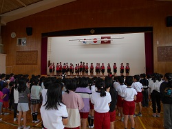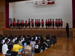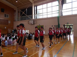 ユニフォームに身を包んだ6年生は、とても頼もしく凛々しくもありました。エールを送る5年生の応援団と1年生から5年生の声に応える6年生は、圧倒的な存在感を示し立派でした。