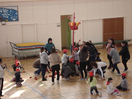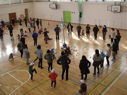 役員さんのアイディアで、運動会の時できなったチェッコリー玉入れと、