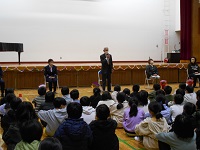 日ごろから、様々な場面でお世話になっている地域の方を招いて、感謝の気持ちをお伝えする全校集会です。子どもたちからの感謝の手紙とお花をプレゼントさせていただきました。子どもたちは、地域の方のお話にも真剣に話に耳を傾け、皆様に支えられていることをしっかりと感じた集会でした。