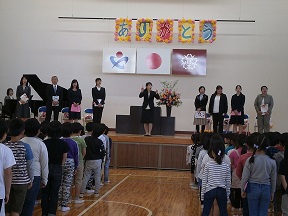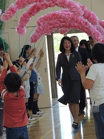 4月13日(金)本年度、本校を去られた9人の先生方が、離任式で本校に戻って来られました。