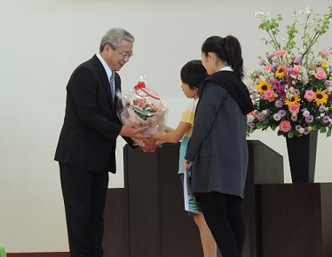子ども達が感謝の気持ちを込めて手紙と花を手渡しました。