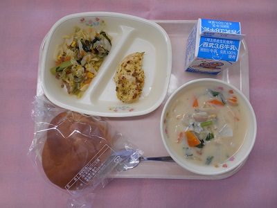 今日は、豆乳を使用した、あっさり味のスープでした。