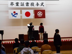 緊張した面持ちで顔をしっかりと上げて、ひとりひとりがしっかりと修了証書を受け取っていました。また、5人の児童が表彰を受けました。おめでとうございます。