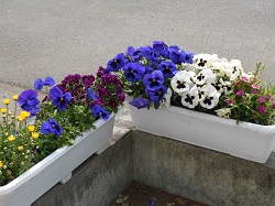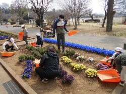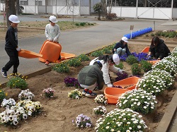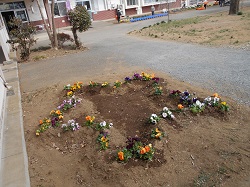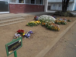 明日の卒業式に向けて花壇の手入れをしていました。お花も卒業をお祝いしています。